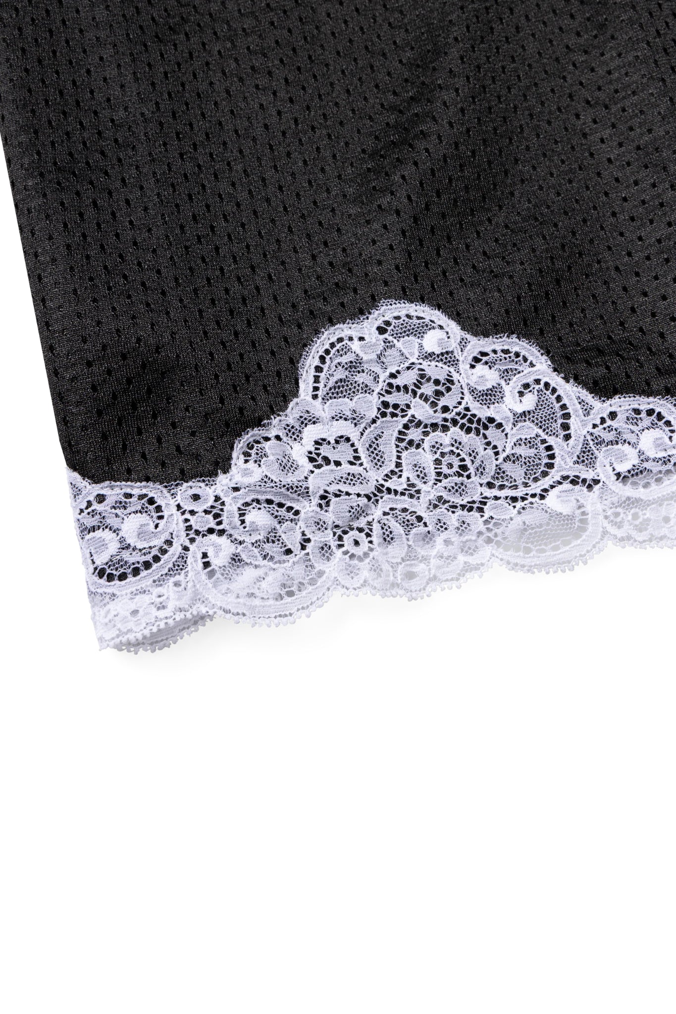 - Contrast lace trim at the hem