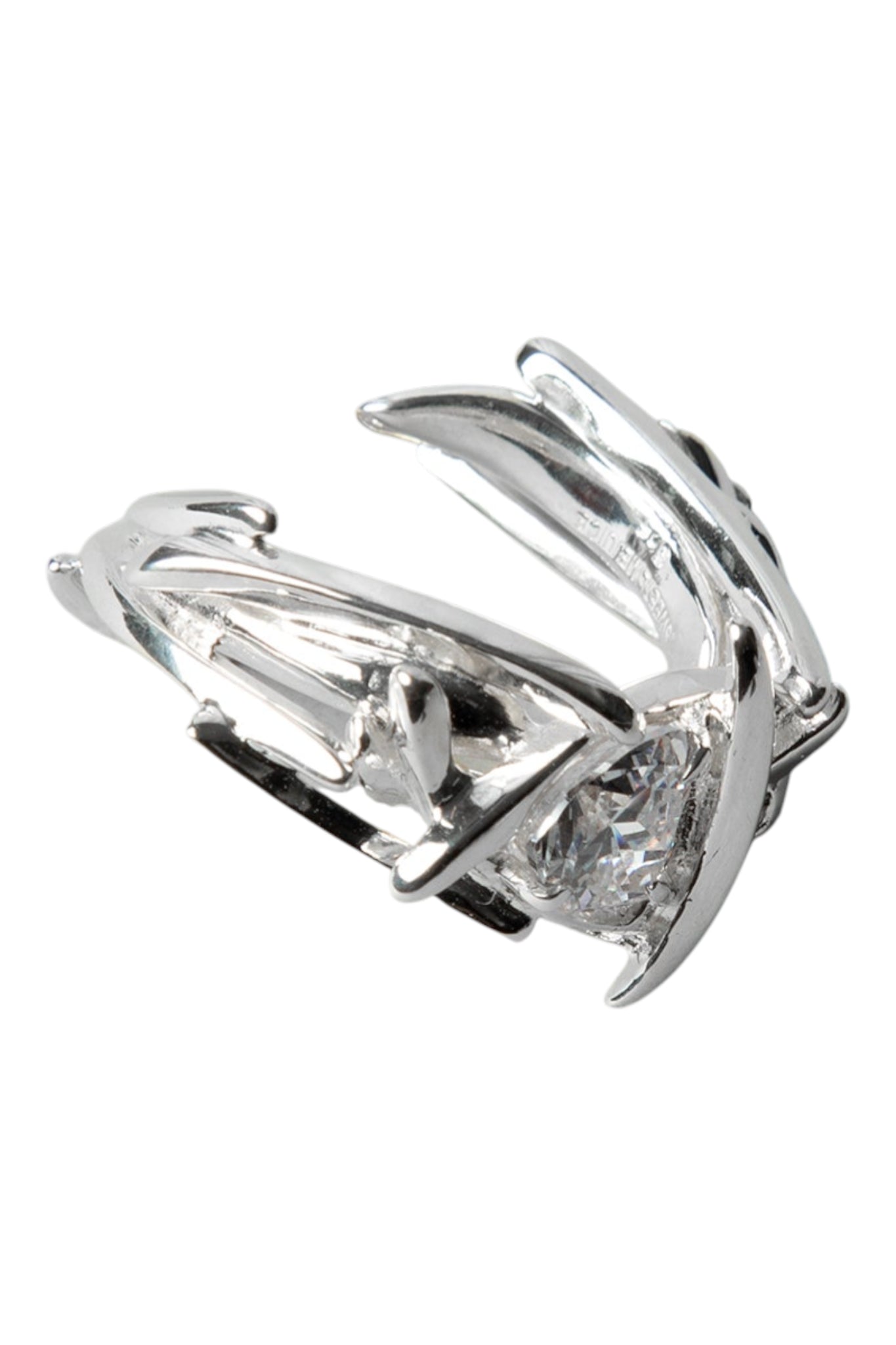 - Claw set gemstone surrounded by layered metal bars